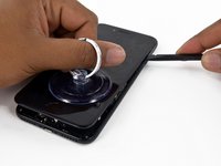 Tira la ventosa fino a creare una piccola fessura tra il gruppo display e il case posteriore.