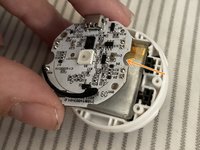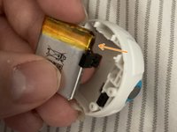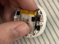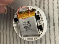 Use the plastic sheet to carefully pull upwards at the edge of the yellow tape on the battery. This should help release the small amount of adhesive.