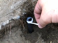 Dig a hole down to the base of the sprinkler head.