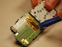 Using the plastic opening tool, carefully remove the yellow film covering the display connector.