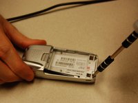 Use a Phillips-head screw bit to remove the screw under the yellow film