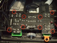 Remove the eight black 7.2 mm Phillips #0 screws from the top of the circuit board and lift it out of its place.