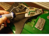 Using the the soldering iron and the solder sucker (or the soldering wick), take away any soldering connections of the potentiometers and the five-way switch.