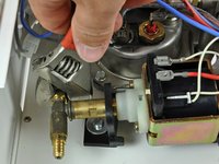 • Use a a large standard screwdriver (we used a washer and a pair of pliers) to remove the one-way valve spring retainer from the bottom of the boiler.