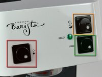 • When you open the steam valve knob (to steam your milk), a cam attached to its shaft presses the digital switch, closing the circuit. This either starts the pump, gives power to the heater, or both, to produce steam (we don't have a circuit schematic).