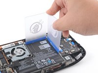 Use a heat gun to heat the adhesive underneath the battery for 1-2 minutes.