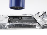 Wrap a layer of aluminum foil around the frame so that just the battery is exposed.