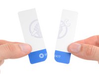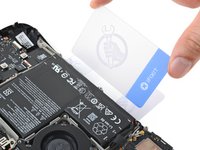 Insert the tip of one of the plastic cards into the right slot in the midframe and under the battery.