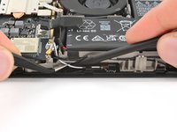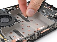 If the speaker cable is taped to the bottom edge of the motherboard shield, gently peel it off.