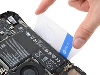 Insert the flat edge of another, uncut plastic card between the bottom edge of the battery and the midframe.