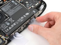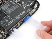 Remove the protective liner from one side of each replacement adhesive strip. Apply each strip to the battery, using the old battery as reference for where it should go.