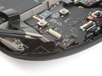 Use a spudger to flip up the small white locking flap on the left button board interconnect cable ZIF connector.