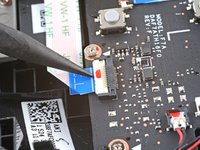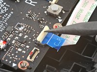 Use the pointed end of a spudger to lift up the small locking flap on the button board cable's ZIF connector.