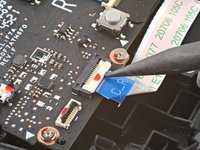Use the pointed end of a spudger to lift up the small locking flap on the button board interconnect cable's ZIF connector on the left button board.