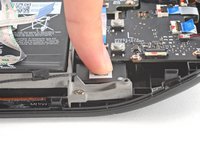 Use an opening pick to wrap the adhesive over the edge of the battery tray, sticking it to the inside edge.