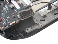 Use a pair of tweezers to peel up the tape bundling the speaker wire to the Wi-Fi antenna cables.