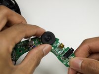 Remove the three 5mm screws with a Phillips #0 driver head on the headphone with the microphone.