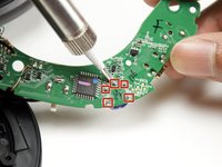 Flip over the circuit board and desolder the five pins to remove the wheel mechanism from the circuit board.
