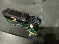 Unscrew the final daughterboard and remove all the boards from the frame. If the spring is broken here you could cut it off and glue a new one in. I haven't figured a way to remove the screen so if you have a broken screen just pry at it until it comes off.
