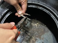 To strip the wires, place about an inch from the end of the wire into the mouth of the wire stripper. Carefully cut through the insulation without cutting through the copper wire.