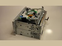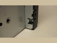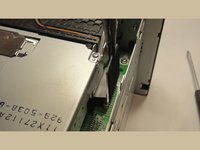 Wedge the tabs of the metal crosspiece attached to the CD drive slightly away from the metal sides of the case to release them.