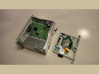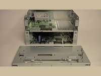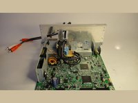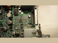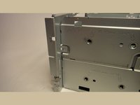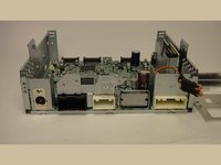Release the rear plate, which is thicker so that it can act as a heatsink, by removing the two long screws (with washers), and the remaining 7 screws. After the line out mod has been performed, the rear plate will not be completely removable without some unsoldering, but the unit can still be disassembled.