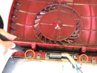 • On the back of the upper pan, use the Phillips #2 screwdriver to remove the two 12 mm screws that attach the top pan to the hinge.