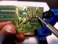 Use the soldering iron and the de-soldering braid to remove any excess soldering adhesive.