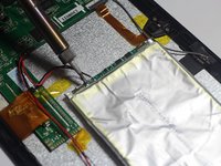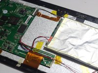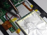 • The battery is secured to the back panel with tape and glue.