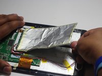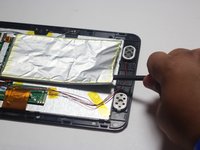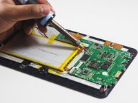 • Tear through the adhesive holding the battery by using the spudger tool.