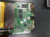Find the first screw at the top left underneath the gold film and use a J0 Phillips Head screwdriver to unscrew it.