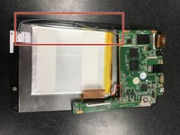 Look under the motherboard to find the battery. There will be yellow tape and black and red wires on the top of the battery.