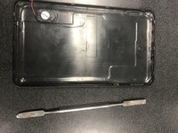 First open up the back on the tablet by wedging a soft tool in between the back cover and the screen, as shown in the pictures.