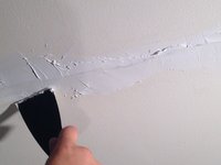 Don’t gouge the ceiling but firmly scrape parallel to the crack. Scraping perpendicularly to the crack will only cause more damage.