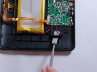 To remove the battery, use the spudger to pry the battery up and away from the tablet.