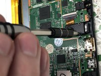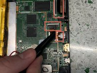 Using tweezers, lift and release the ribbon cable that was covered by the battery.