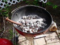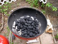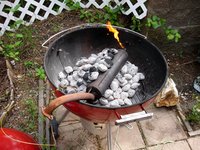 Start a fire in a charcoal grill with about three layers of coals.