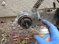 Thoroughly spray the the brake shoe assembly and inside of the brake drum with a brake cleaning solvent.