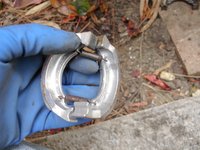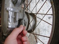 Then, spread apart the flat side of the brake shoes and place them through the flat bolt on the brake drum assembly.