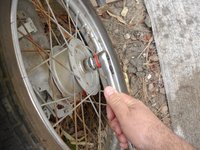 Place the wheel back on the axle. Make sure that the thread of the axle matches up to the thread of the wheel.