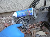 Apply silicone grease to the round and flat bolts on the brake drum assembly.