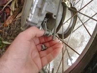 Use your fingers to unscrew and remove the brake cable adjustment nut.
