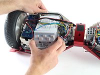 Detach the two cables connecting the battery to the Swagtron by pinching the connector clips and pulling the cables apart: