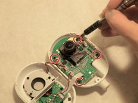 Facing the front of the camera, remove the four 2.0 mm Phillips #0 black screws that hold the back of the motherboard to the case.