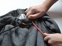 Tie the drawstrings together in a bow.