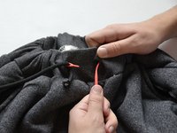 Gather the fabric together to move the Drawstring Threader through the hollow band of the sweatpants.