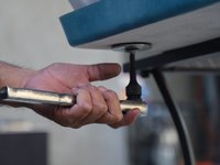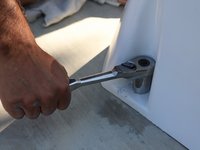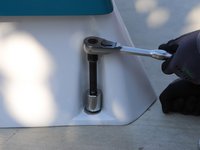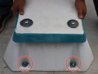 Remove 2 fasteners where the diving board meets the fiber glass base using the 5/16" Allen hex socket and the 3/4" hex nylock nut.