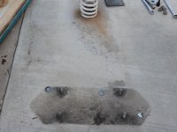 After 4 nylock hex head fasteners have been removed, lift the fiber glass base from the 4 threaded studs that are protruding from the concrete.