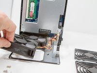 Retirez les 8 vis des grilles des ventilateurs. Elles permettent de maintenir à la fois les grilles et les ventilateurs.