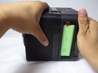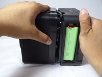 Use one hand to grip the device from the side of the handle, and use the other hand to grip the side of the device that contains the woofer